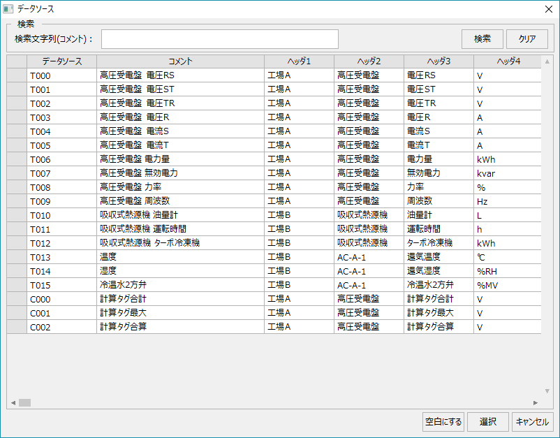 帳票対象とするポイント(データソース)を登録する設定画面です。