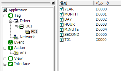 今回の例では、U01.F01.T01がTRUEになったらイベントが発生するように設定します。