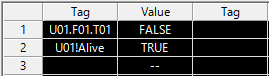 3.オンラインにした後、「U01.F01.T01」及び「U01!Alive」をセルに入力する