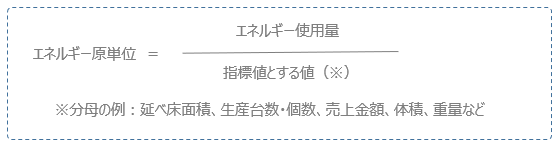 エネルギー管理における「エネルギー原単位」とは、各種エネルギーがどれだけ効率良く消費さたかを見るための指標であり、以下のように定義されます。