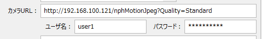 (URLの例)http://user1:Ks4g97dT12@192.168.100.121/nphMotionJpeg?Quality=Standard