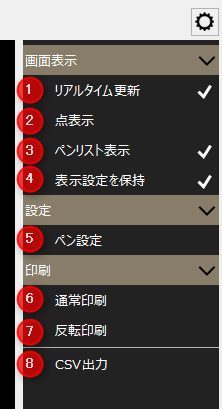 設定メニューは「設定」ボタンをクリックする毎に表示/非表示が切り替わります。設定メニューの内容は以下のとおりです。