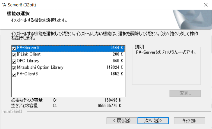 64Bit版のFA-Serverをインストールする場合は、「Mitsubishi Option Library」は選択できません。 |