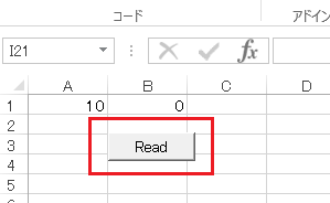 2.読み込みを任意のタイミングで行えるように、読み込みようのReadボタンを配置します。