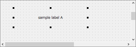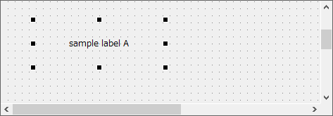 ラベルに表示する文字列は、プロパティビューから指定します。ラベルオブジェクトを選択状態にしてから、“Text”プロパティに文字列を入力します(ここでは、“sample label A”と入力します)。