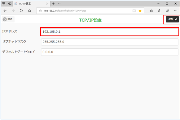 4.任意のIPアドレスを指定し、「保存」を押下する