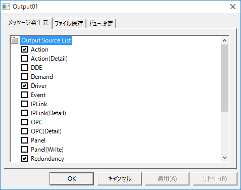アウトプットビューは、メッセージの内容をテキストファイルへ保存することもできます。特にトラブル発生時のトラブルシューティングにおいて、メッセージをログファイルとして保存しておく事は非常に有効な手がかりとなります。