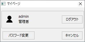 このダイアログでは、コンボボックスからログインユーザを選択してログインすることができます。