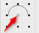 弧コントロールはバインドによって回転させることができます。回転の角度はAngleで設定します。回転の中心はRotateX/RotateYプロパティで設定するか、以下の中心ハンドルをマウスで移動させてください。