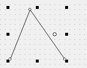 尚、ハンドルを両方とも削除すると(つまり、両方のハンドルとも頂点の黒丸と同じ座標位置に重ねると)、線は直線補間に戻ります。 |