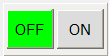 ボタン1(OFFボタン)が消灯し、ボタン2(ONボタン)がON色になりました。 ここで、ボタン1(OFFボタン)をクリックすると出力タグにOFF値が書き込まれます。 |