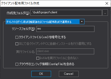 2.「クライアント配布用ファイル作成」画面が表示されます。
