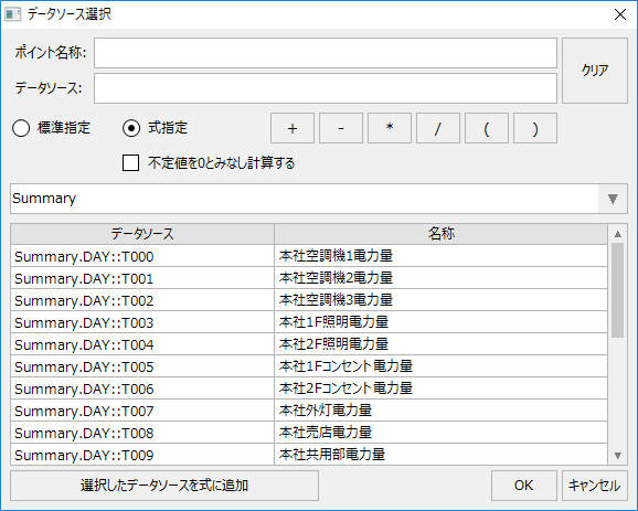 ポイントの演算は、データソース選択ダイアログから指定します。