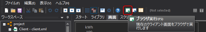 1.Panel Editorの下図のアイコンをクリックすると、Panel Browserが起動し、クライアント設定ファイルが開かれて実行されます。