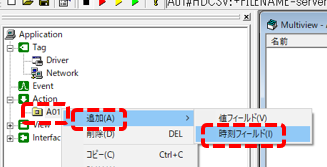 左ツリーから「A01」を右クリックし、「追加」「時刻フィールド」を選択してください。