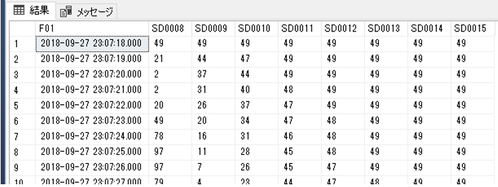 上記により、生成されるログデータのCSVファイルのフォーマットは、1列目に日時、2列目以降にSD0008からSD0015までのタグの値が格納される動作となります。