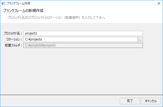 2.プロジェクト名とフォルダを指定する