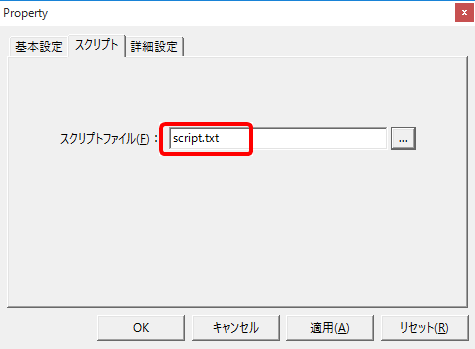 3.追加したアクションのプロパティを開き、スクリプトファイルを選択します。