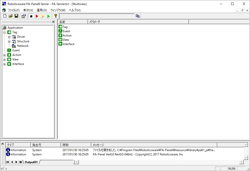 2.Windowsのスタートメニューより、「Roboticsware-PA-Panel6-Editor」を選択します。すると、画面を作成するためのアプリケーションが起動します(このアプリケーションのことをPanel Editorと称します)。