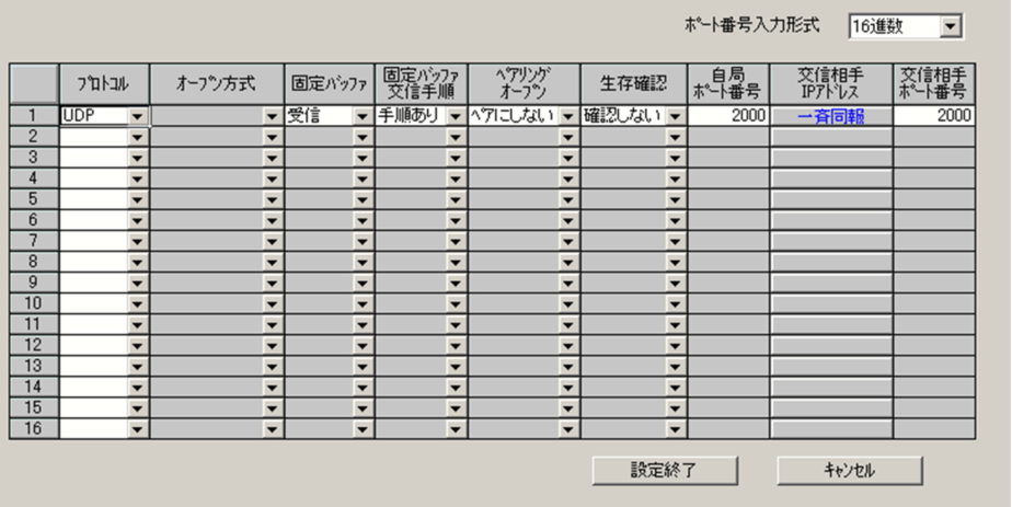 設定の際には、以下の点に注意してください。 •TCP/IP、ルータ経由で接続する場合は別途設定し直して下さい。 •自局ポート番号が実際の構成と異なる場合は変更して下さい。 •交信相手ポート番号が実際の構成と異なる場合は変更して下さい。