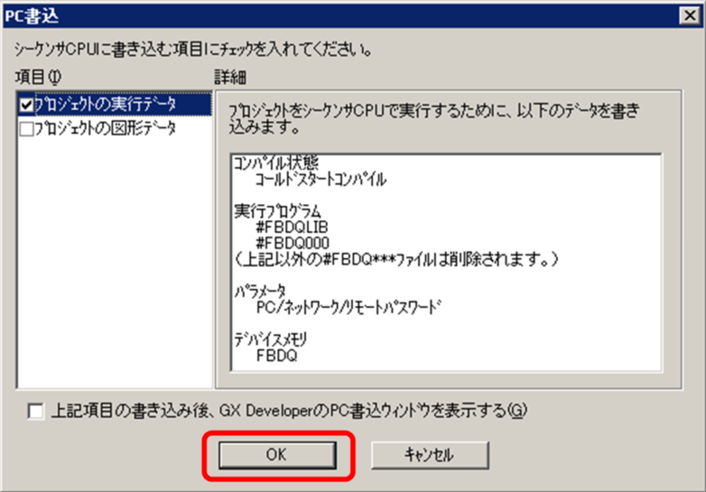 10.PC書込ダイアログから、プログラムとパラメータを書き込んで下さい。