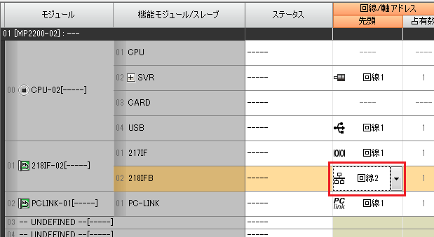 3.「モジュール構成」から「218IF-02」の回線番号を設定する