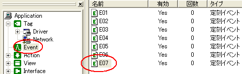 2.左側のツリーの「Event」を右クリックしメニューから「追加」「定刻イベント」を選択