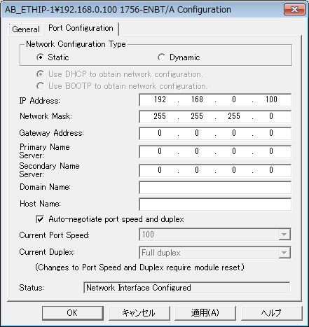 ※「Gateway Address」などのその他設定は環境に合わせて設定してください。
