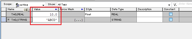 接続確認を行うために、PLC側にタグを設定します。タグの通信テストを行う必要がない場合は、以降の設定は必要ありません。