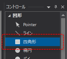 コントロールタブの「図形」から、「四角形」コントロールを選択します。