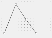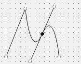 尚、ハンドルを両方とも削除すると(つまり、両方のハンドルとも頂点の黒丸と同じ座標位置に重ねると)、線は直線補間に戻ります。 |