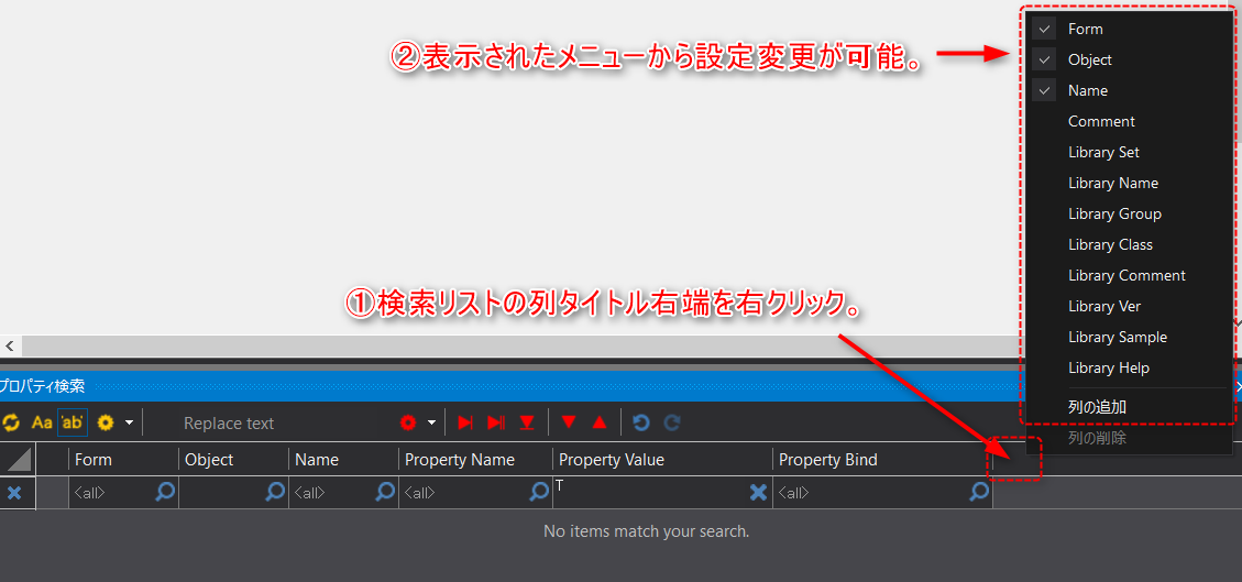 Panel Editorのプロパティ検索機能のうち、検索操作について解説します。