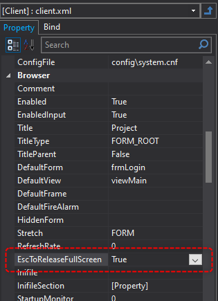 この機能の有効/無効は、ルートの「EscToReleaseFullScreen」プロパティで設定することができます。