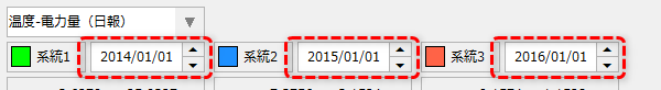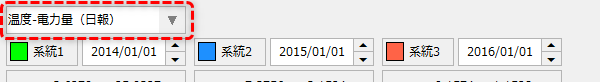 画面上部の以下のコンボボックスから、各系統に表示するデータの日付を選択します。