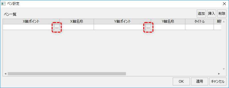 ペンの設定では、X軸ポイント、Y軸ポイントに対して、表示するデータソースを選択する必要があります。