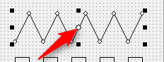 連続線(Polyline)コントロールは作成後でも、形を修正できます。以下の各点へマウスを移動すると、マウスが+表示になります。各点をドラッグアンドドロップして、形を修正して下さい。