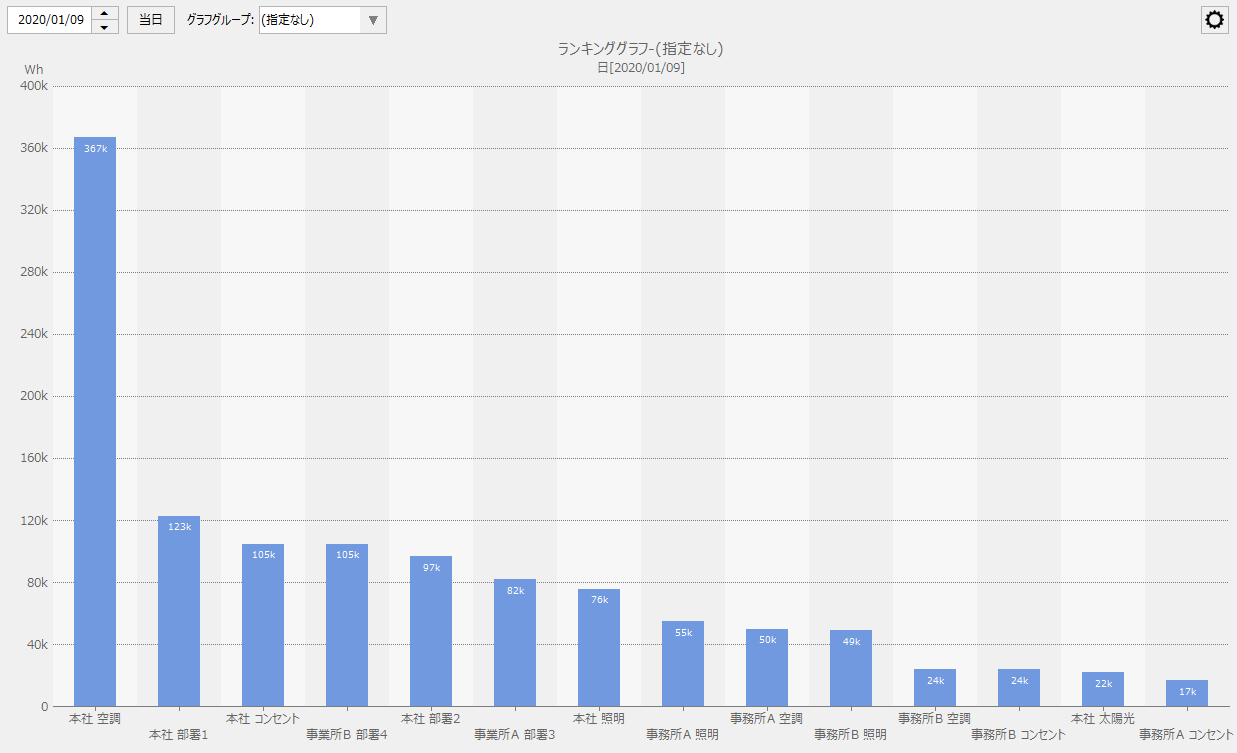 使用量をグラフグループの単位でランキング形式で表示します。 |
