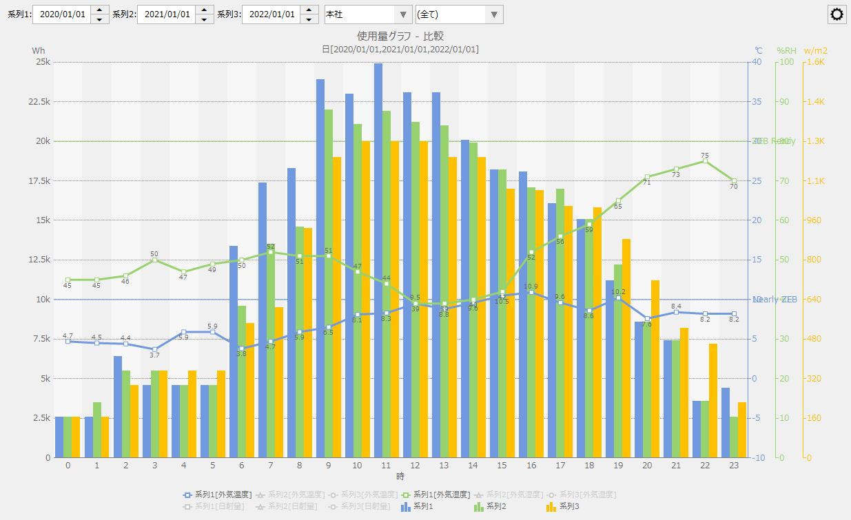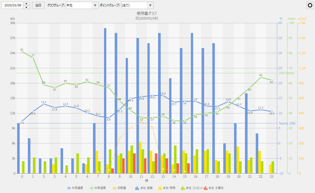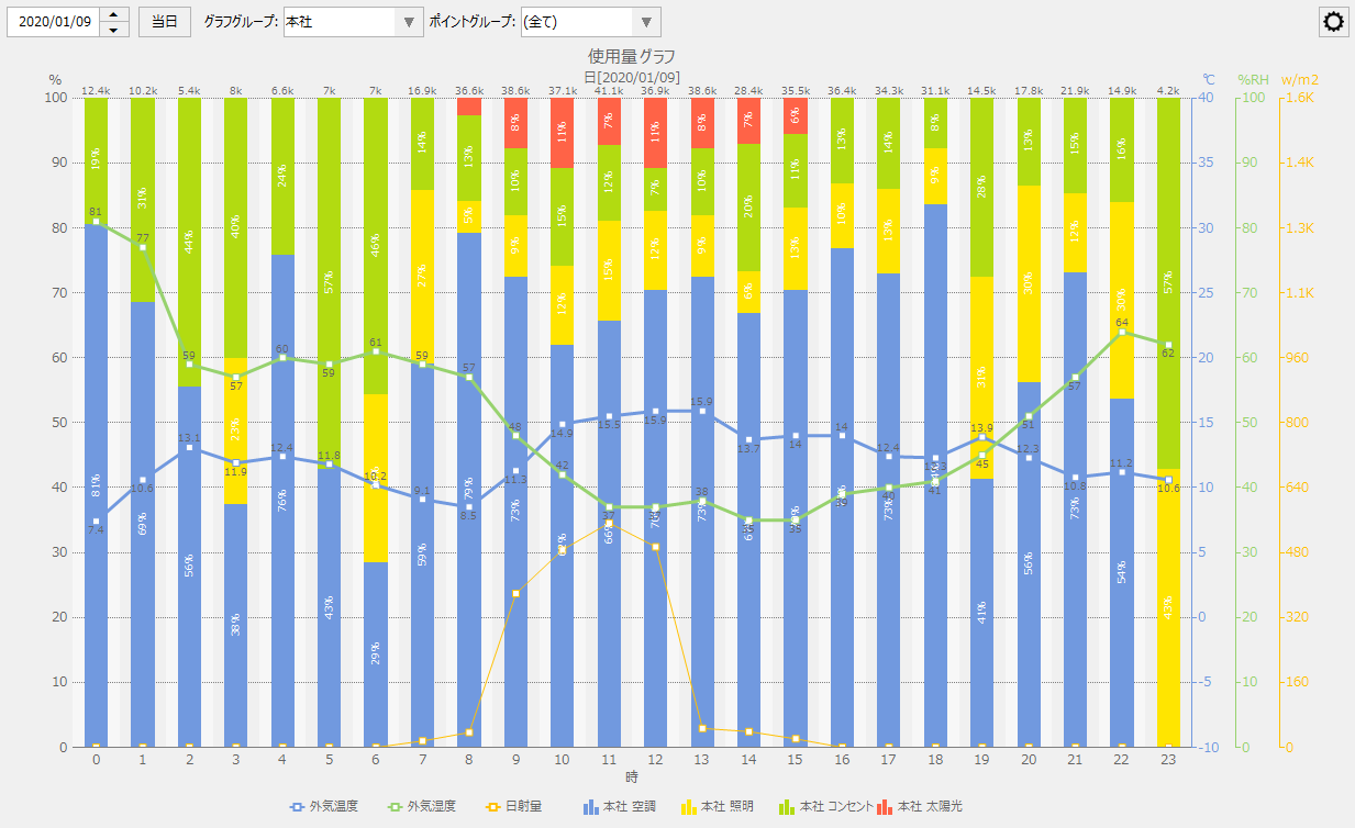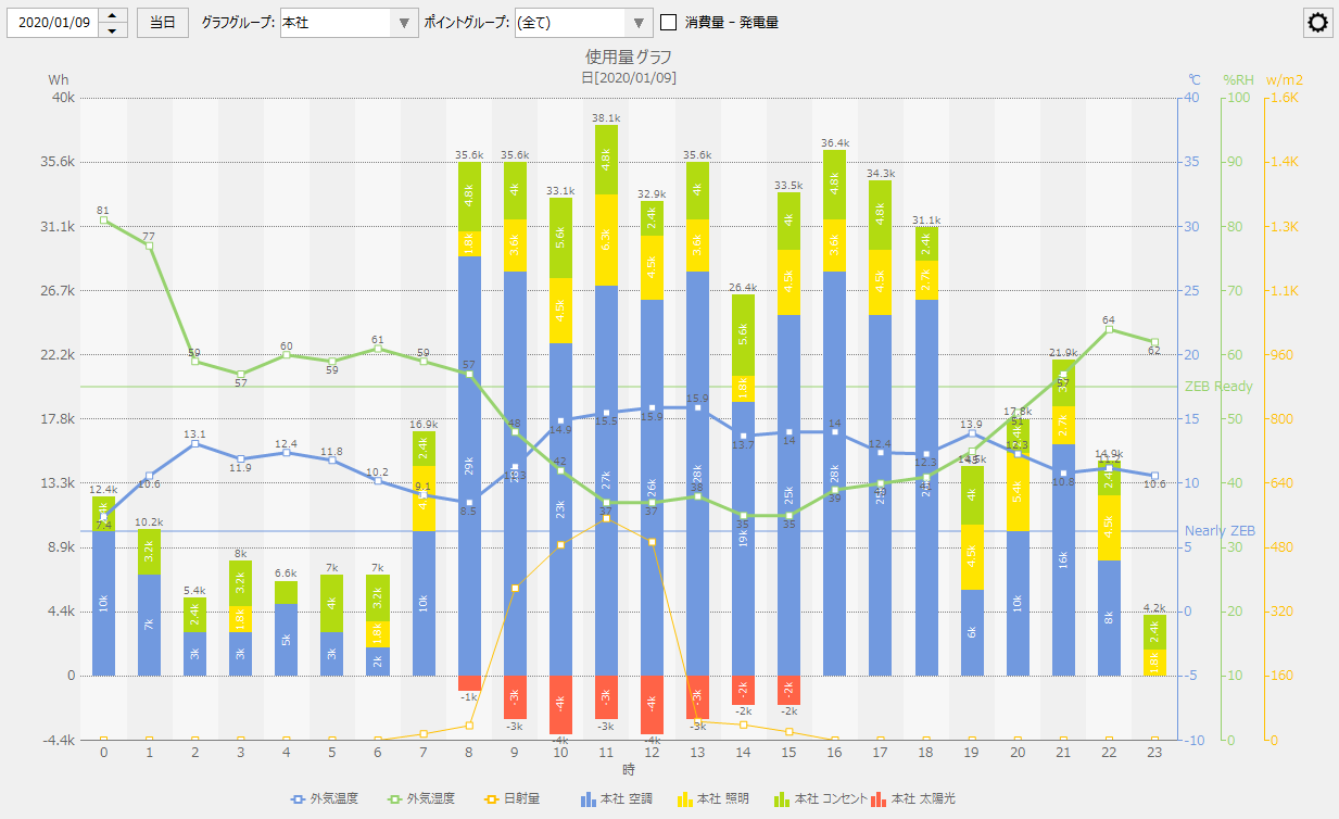 (「消費量 - 発電量」をONにした例)